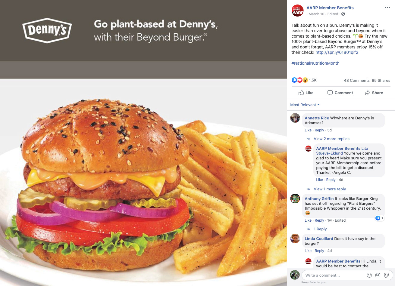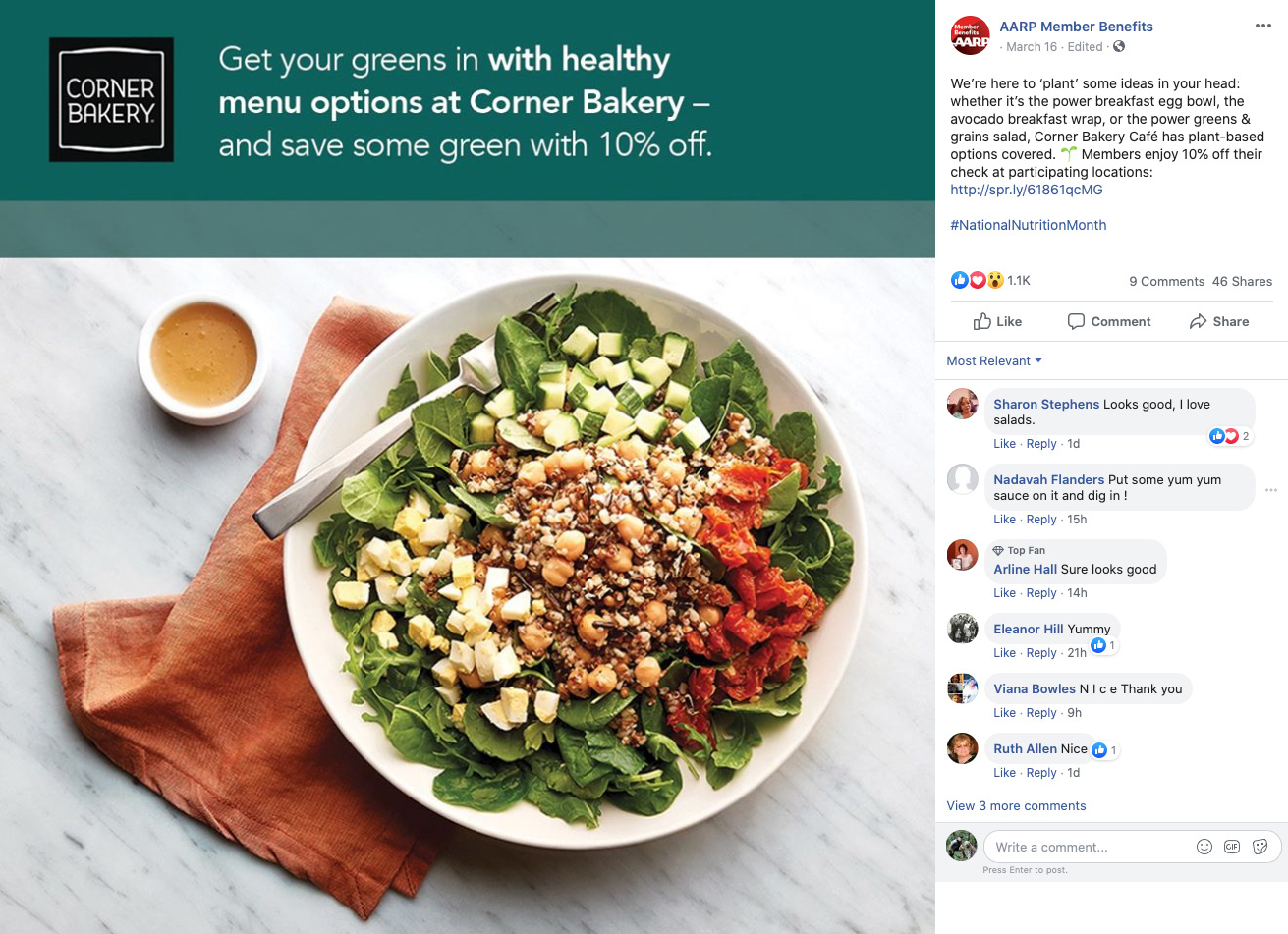 During National Nutrition Month, AARP members can enjoy discounted healthy plant–based dining options at AARP provider restaurants.
